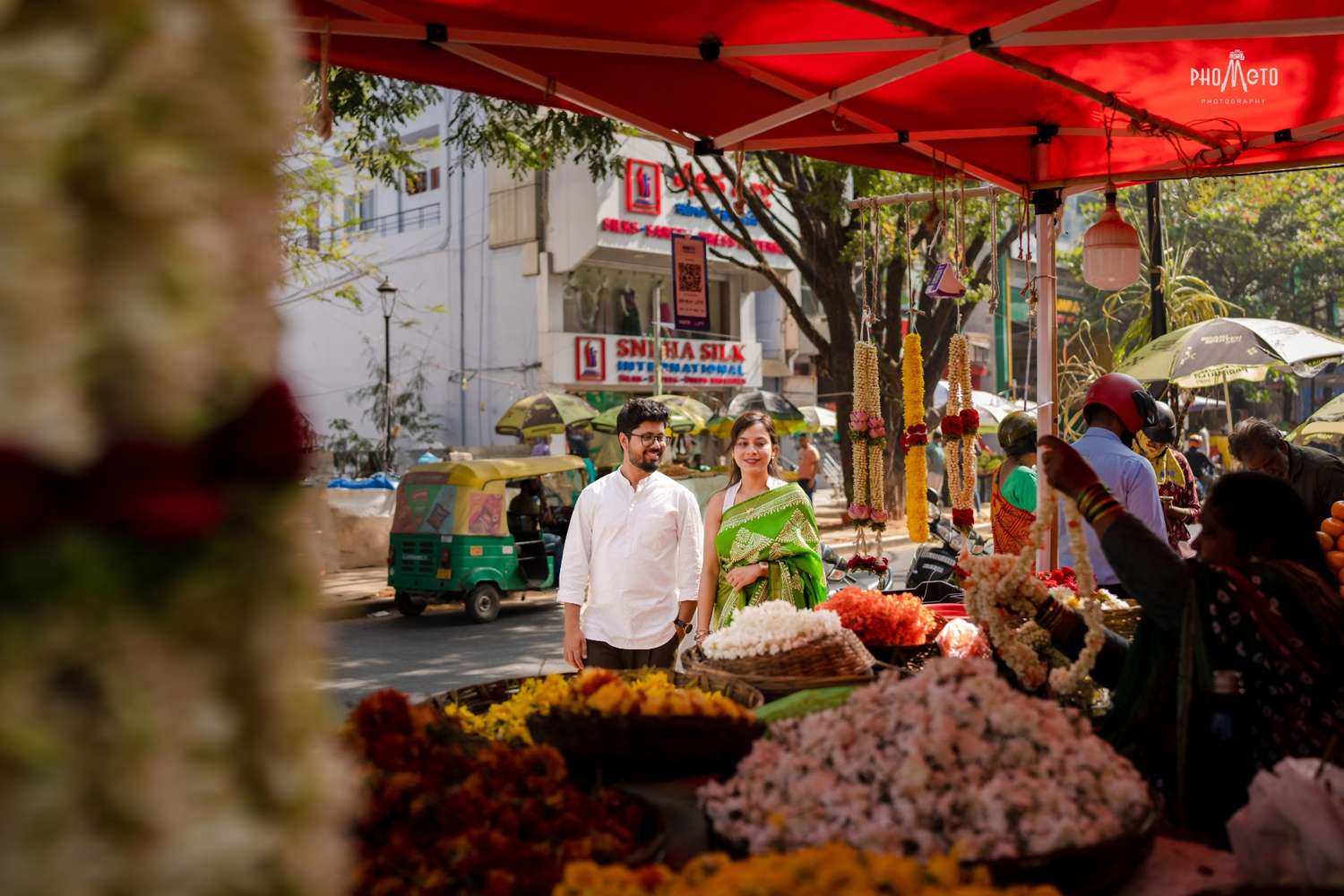Looking for the best pre wedding shoot in KR Flower Market, Bangalore? You’re at the right place! At Phometo, we specialize in pre-wedding photography at KR Flower Market one of the most beautiful and unique locations in Bangalore. Based in Vijayanagar, Bangalore, we at Phometo Photographers turn your special moments into cinematic memories, and KR Flower Market is one of our favorite spots to shoot.
